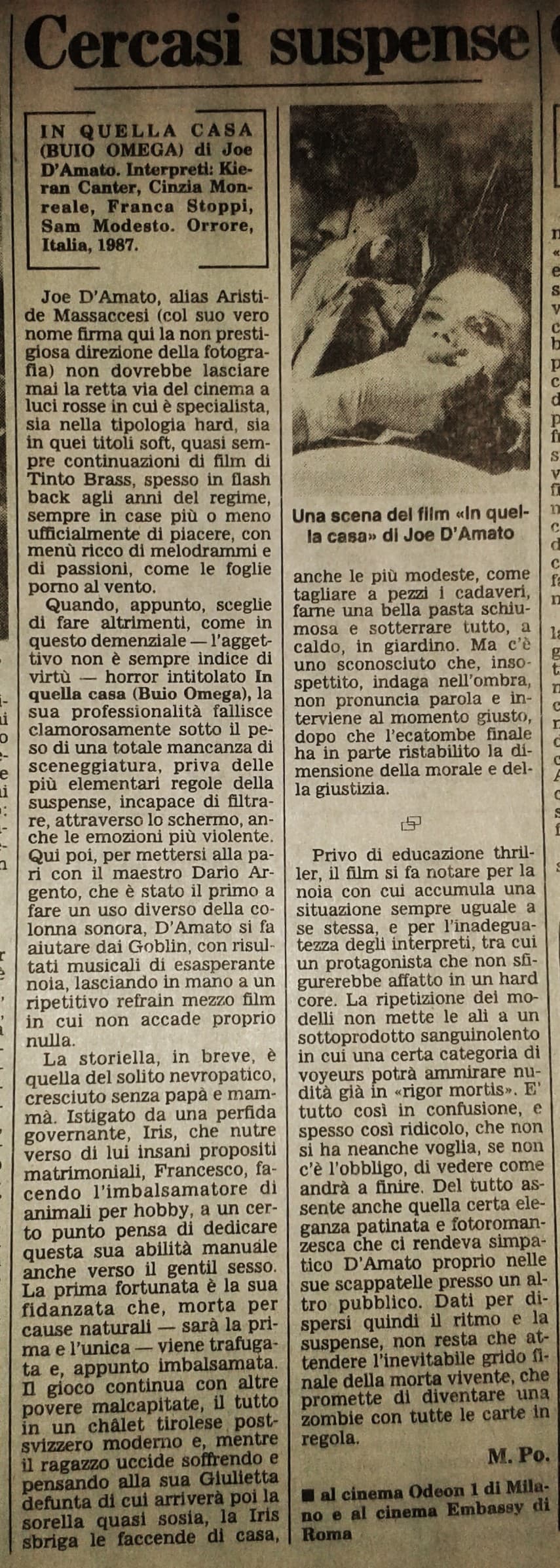 Per me, è proprio un buon film. E al di là dell’argomento morboso e ripugnante, girato con cura e addirittura una certa eleganza. Massaccesi, quando ci si metteva, aveva gusto, perfino nelle “pratiche basse”. Tutt’altro, quindi, che il “pessimo regista” secondo alcuni critici, anche rispettabili, ancora oggi… ![]()