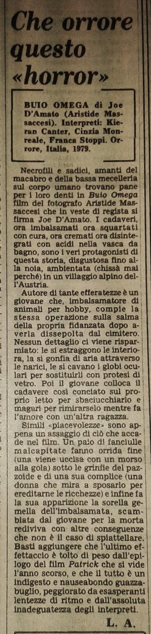 La recensione originale è apparsa sul CdS dell’11 gennaio 1980, quella della riedizione sul CdS del 19 agosto 1987.