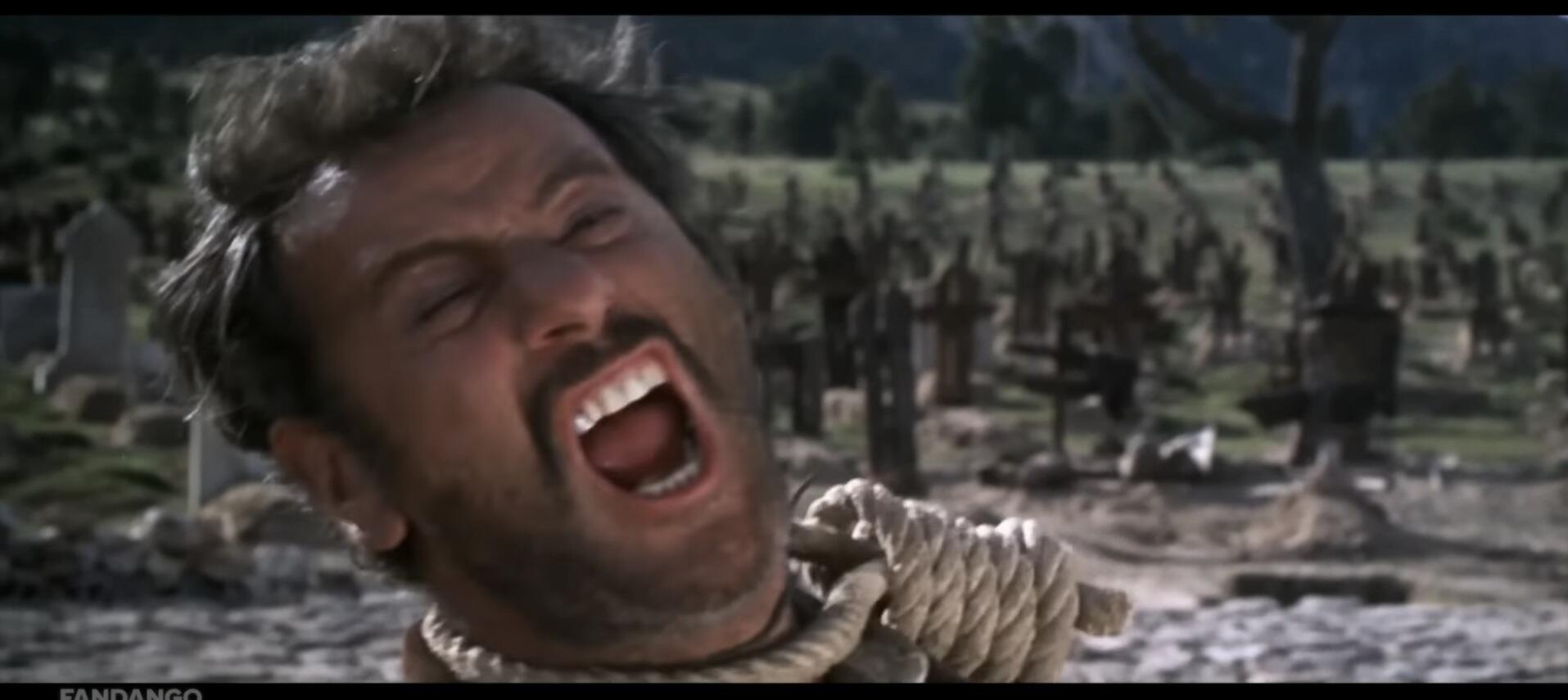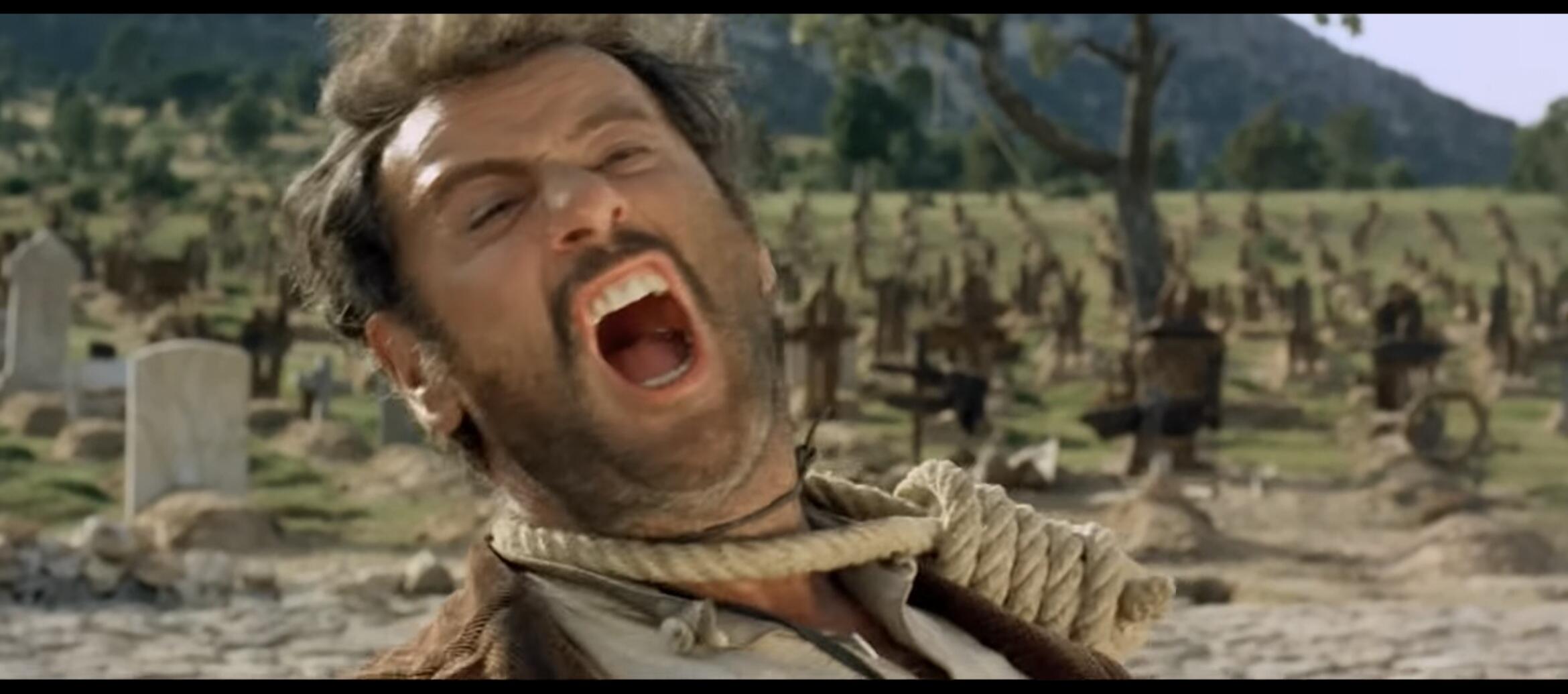 Per la famosissima scena finale dell’insulto detto da Tuco sono stati girati due take alternativi, uno recitato con il labiale della battuta in inglese e l’altro con il labiale italiano. Le movenze di Eli Wallach sono praticamente identiche tra i due take, la sottilissima differenza tra questi due si nota, appunto, leggendo il labiale.