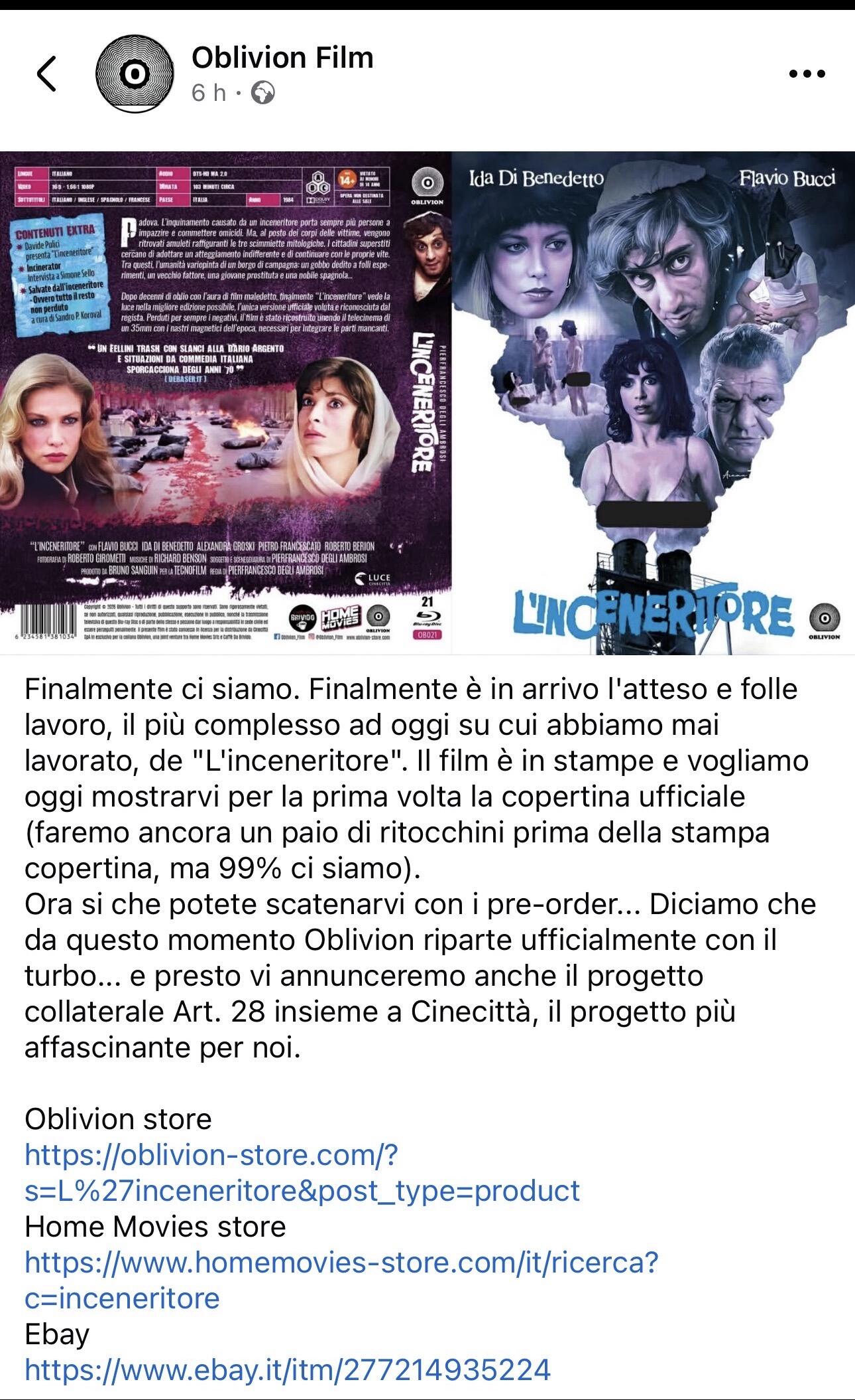 Confermati pezzi da fonte nastro analogico, che però mi dicono non abbia le cadute che ha la copia circolante. Durata di circa 3 minuti in più rispetto a quello che gira, e tra gli extra “Salvate dall’inceneritore - ovvero tutto il resto non perduto” che immagino saranno altre scene recuperate ma non incluse nel montaggio.