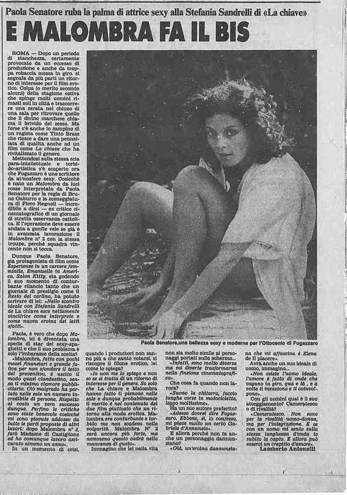 Convenzionalmente inserito nel filone dell’erotismo retro chic inaugurato da Tinto Brass con La Chiave e proseguito da D’Amato (L’Alcova, Il Piacere) - ma dopo Gaburro - secondo me trae qualche spunto pure da Borowczyk, così come letterariamente oltre a Fogazzaro c’è anche un po’ di Poe (Ligeia) e di sepolte vive varie. Certamente il paragone con Brass è perdente, tuttavia a me Malombra non dispiace. Gaburro tiene in piedi la baracca nonostante un cast tutt’altro che stellare, che vive unicamente di Paola Senatore (mattatrice) e della frizzante Scilla Jacu, che non ho idea di cosa altro abbia fatto in carriera (se mai ne ha avuta una).