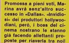 A parte questo pur non conoscendo la reale situazione dell’attrice non posso fare a meno di pensare se lei, così come altre, hanno lasciato andare alcune occasioni. Insomma se persero il treno. Mi viene in mente Rita Silva, che almeno non ha mai fatto hard, che dopo il successo personale avuto con lo sceneggiato Rai Accadde ad Ankara le venne consigliato di aspettare perché le sarebbero arrivate offerte di pari livello, mentre lei accettò subito di andare a fare Sensi caldi con Sacco. Oppure Paola Senatore che dopo Nenè, Sam & Sally e Action s’infognò sempre di più in produzioni misere. Io credo Marina qualche occasione deve pur averla avuta. Entrare nel cast di uno sceneggiato Rai non credo fosse così semplice. Poi vai a sapere.