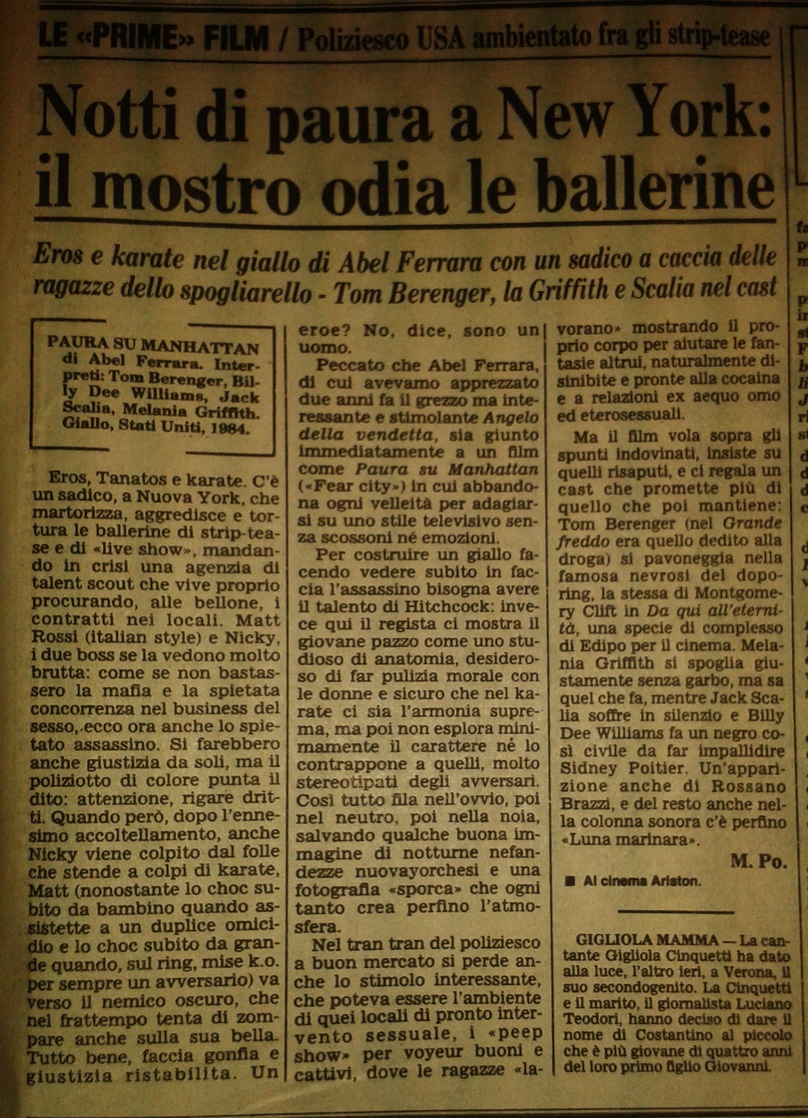 sesso e violenza?si ma a dosi omeopatiche qui..visto in br ,un Ferrara molto controllato,e commerciale,nel senso buono del termine, non mi è dispiaciuto,l ambientazione è particolare,molto bella fotografia,ci sono i topoi classici(chiesa,senso del peccato ecc)..Qui si narra la vicenda di night gestiti da una strana coppia di amici ,che lavora (o fa parte?)della mafia..in cui a un certo punto un sk prende di mira le ballerine di strip…il cast è notevole ,a parte forse tom berenger è un po troppo spaesato,sembra sempre assente con la testa durante tutto il film,il killer di ballerine mi convince di piu.