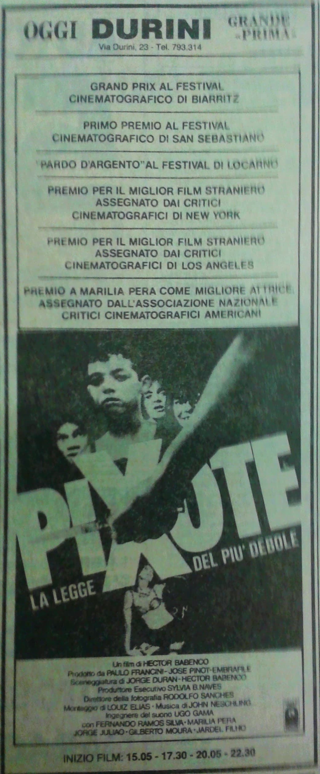 ricordo il battage pubblicitario con intervista della stubing a babenco (una delle domande era come gli era venuto in mente di passare da piccola guerra antica a questo, ignorando che babenco non era nuovo a queste cabrate di sordido veritè-style, si veda anche il biopic su lucio flavo di 5 anni prima) che venne ribambato per settimane su ciak si gira della isvema, con spezzoni del film e trailer finale, col regista che pixote era un vero menino de rua e non un attore. l’idea complessiva era di qualcosa dove la speranza e il riscatto erano i primi esclusi. devo dire che quando lo vidi qualche anno dopo in vhs rimasi perplesso e annoiato, forse perché concedeva poco e niente alla spettacolarità ed ero fruitivamente immaturo. recuperato oggi chissà. ho ancora in testa le scene del trailer (che si chiudeva con un freeze frame di lui che correva disperato con alle spalle una volante della polizia che lo tampinava), ma del film non ricordo niente.